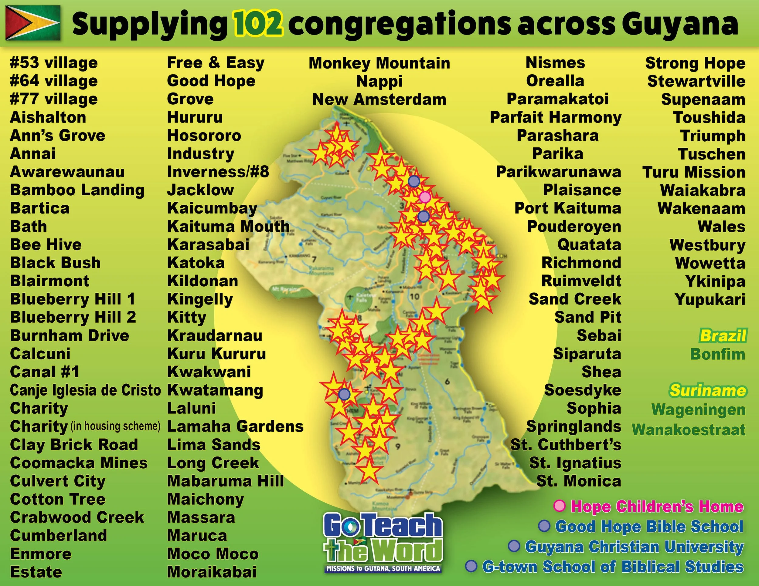 •To match needs in Guyana with willing donors in the U.S. (Bibles, class material, songbooks, glasses, benevolence, church building construction materials).